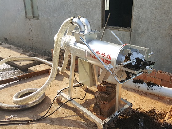 用液下泵将原粪便提高送往牛粪处理机内,挤压成型绞龙将粪水慢慢引向人体正前方,另外不断提升外缘的工作压力,驱使原材料中的水份在边压带滤的功效下挤压网筛,排出排水管道。牛粪处理机的工作中是持续的,其原材料持续的提高至人体内,外缘的工作压力持续扩大,当大到一定水平时,就将倒料口顶开,挤压挤压成型口,做到挤压成型进料的目地。假如注入的排泄物水过多也会经溢液管排在原化粪池中也具有了拌和的功效,经螺旋式挤压成型过虑分离出来出的污水可立即配送至沉砂池等。以便把握进料的速度水分含量,能够 调整服务器正下方的平衡块,以做到令人满意适度的含水量。